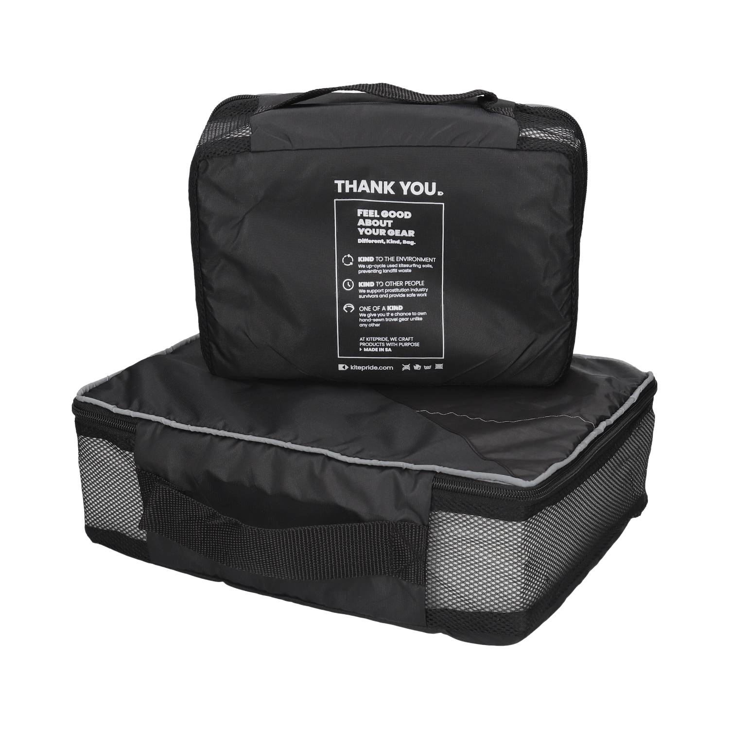 Stay organized on your travels with our eco-friendly Packing Cube made from upcycled kitesurf fabric. This high-quality cube keeps your luggage neat and tidy throughout your trip.